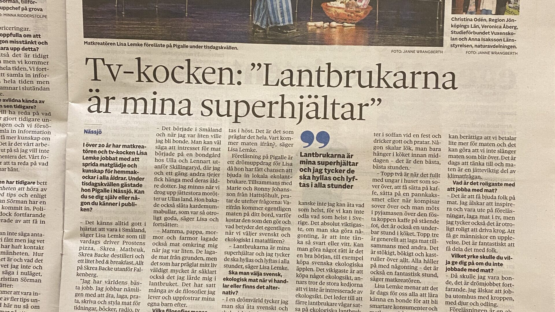 https://www.smalandsdagblad.se/2024-03-12/tv-kocken-lisa-lemke-lantbrukarna-ar-mina-superhjaltar (Låst artikel, kräver prenumeration)